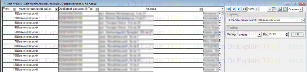 426 Звіт по пільговиках, по яких ЦО нараховувалось по площі