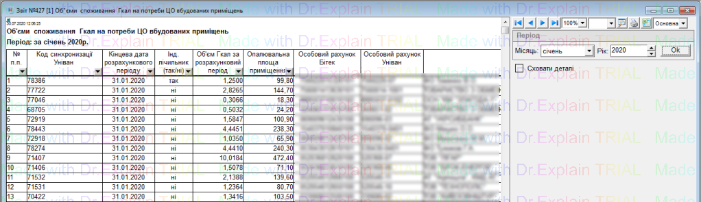 519 Звіт про нарахування за послугу з постачання теплової енергії по періодам