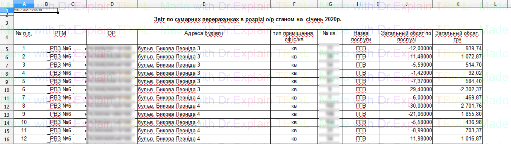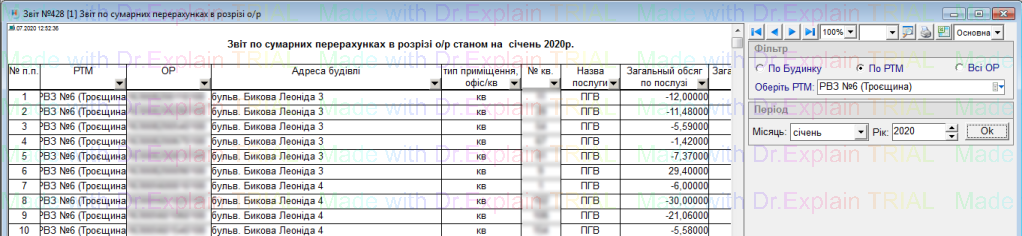 519 Звіт про нарахування за послугу з постачання теплової енергії по періодам