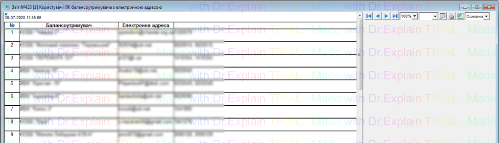 Інформація про користувачів ЛК балансоутримувача, в кого внесені дані електронної адреси