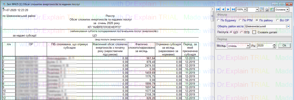 519 Звіт про нарахування за послугу з постачання теплової енергії по періодам