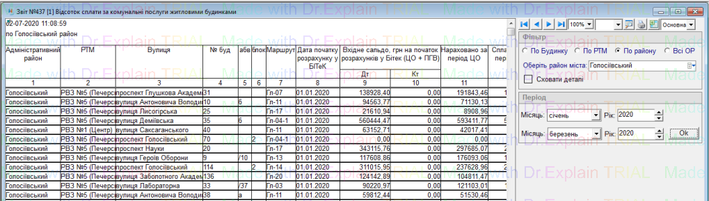 519 Звіт про нарахування за послугу з постачання теплової енергії по періодам