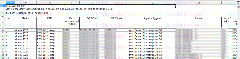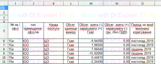 519 Звіт про нарахування за послугу з постачання теплової енергії по періодам