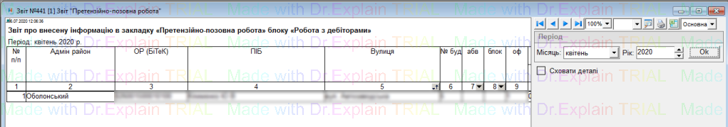 441 Звіт "Претензійно-позовна робота"