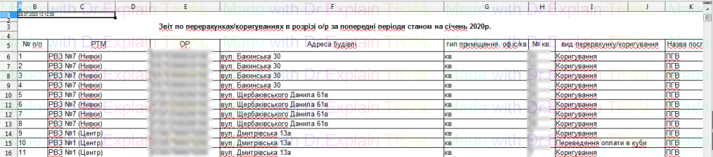 341 Звіт по особових рахунках щодо яких відбулися зміни опалювальної площі в певний період