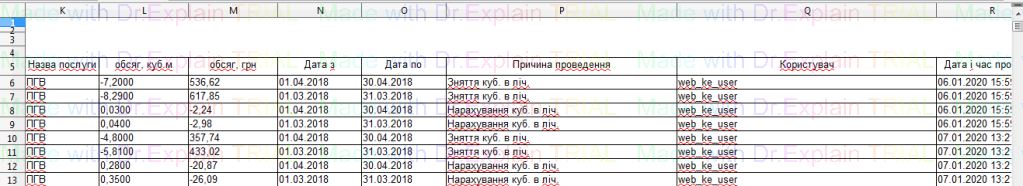 519 Звіт про нарахування за послугу з постачання теплової енергії по періодам