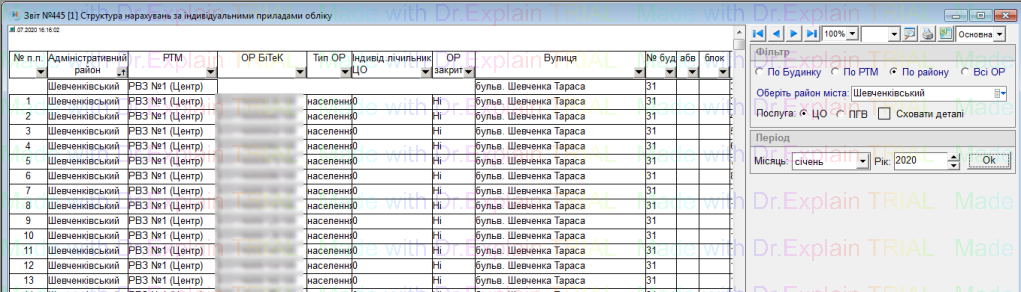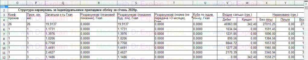 519 Звіт про нарахування за послугу з постачання теплової енергії по періодам