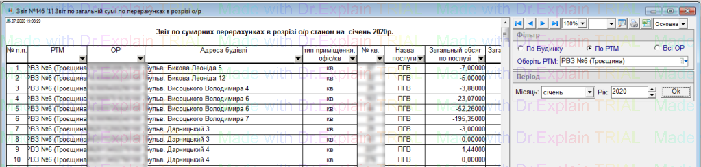 446 Звіт по загальній сумі по перерахунках в розрізі о/р
