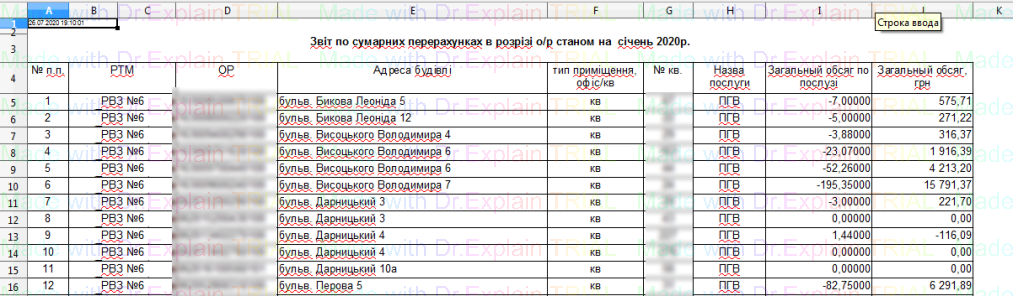 341 Звіт по особових рахунках щодо яких відбулися зміни опалювальної площі в певний період