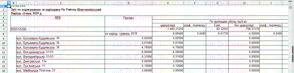 519 Звіт про нарахування за послугу з постачання теплової енергії по періодам