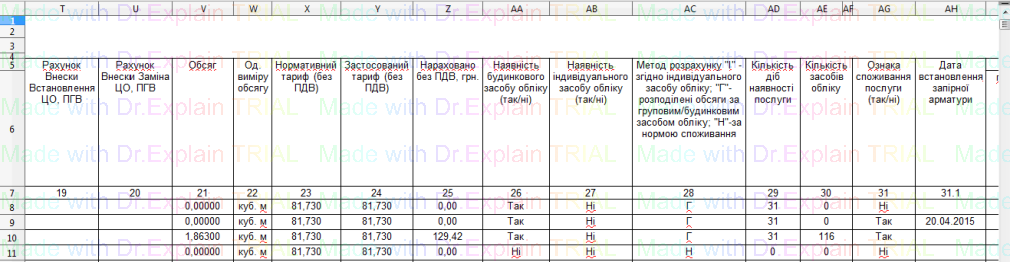 519 Звіт про нарахування за послугу з постачання теплової енергії по періодам