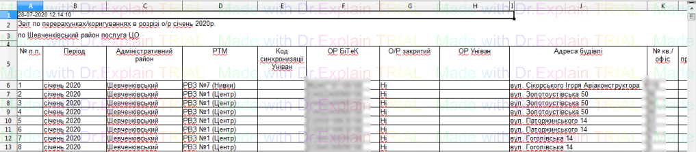 341 Звіт по особових рахунках щодо яких відбулися зміни опалювальної площі в певний період