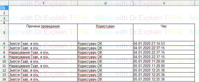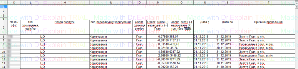 519 Звіт про нарахування за послугу з постачання теплової енергії по періодам