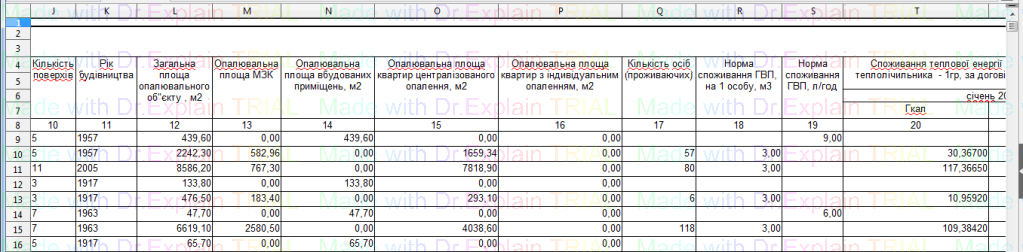 545 Список опалювальних площ по теплоджерелах