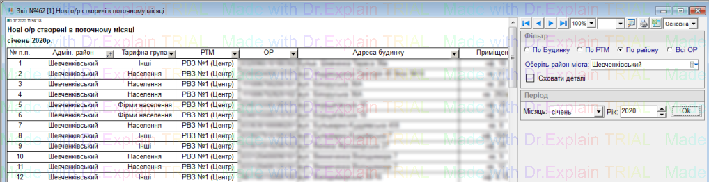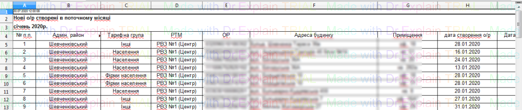 341 Звіт по особових рахунках щодо яких відбулися зміни опалювальної площі в певний період