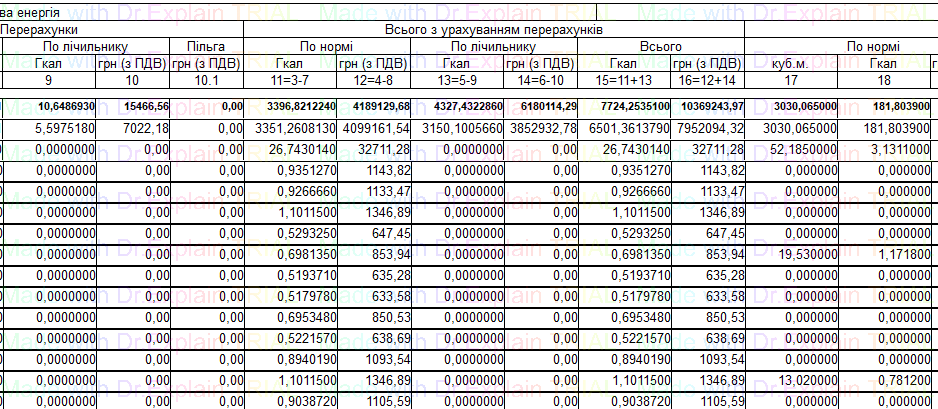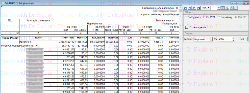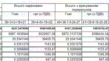 519 Звіт про нарахування за послугу з постачання теплової енергії по періодам