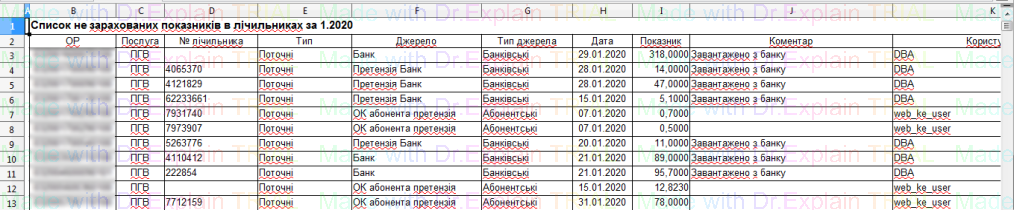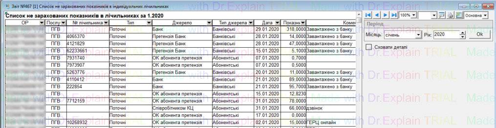 467 Список не зарахованих показників в індивідуальних лічильниках