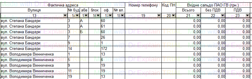 388 Звіт по особовим рахунках, по яких застосовано тариф без ПДВ