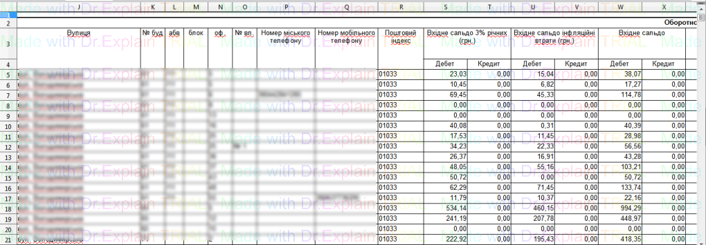 341 Звіт по особових рахунках щодо яких відбулися зміни опалювальної площі в певний період