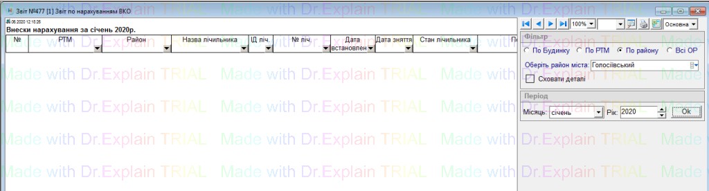 519 Звіт про нарахування за послугу з постачання теплової енергії по періодам