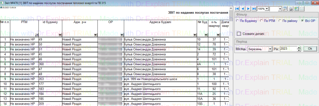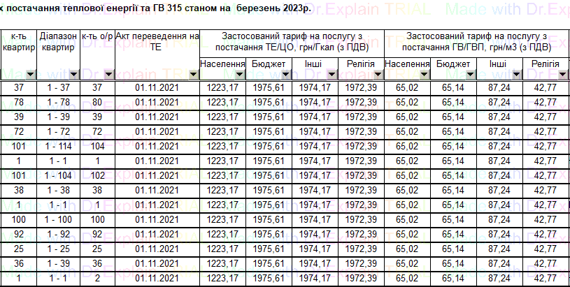 478 ЗВІТ по наданих послугах постачання теплової енергії та ГВ 315