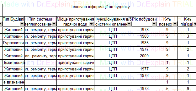 321 Звіт про наявність санітарних приладів по вбудованим приміщенням