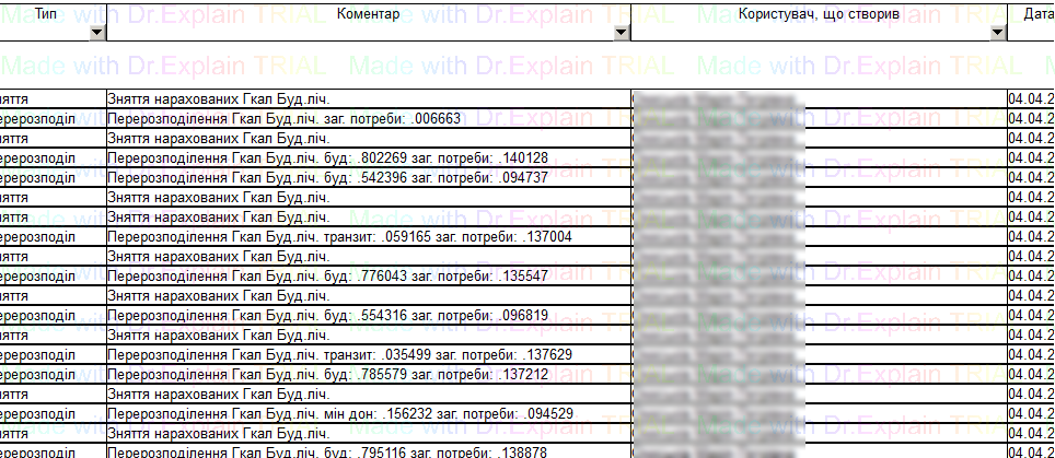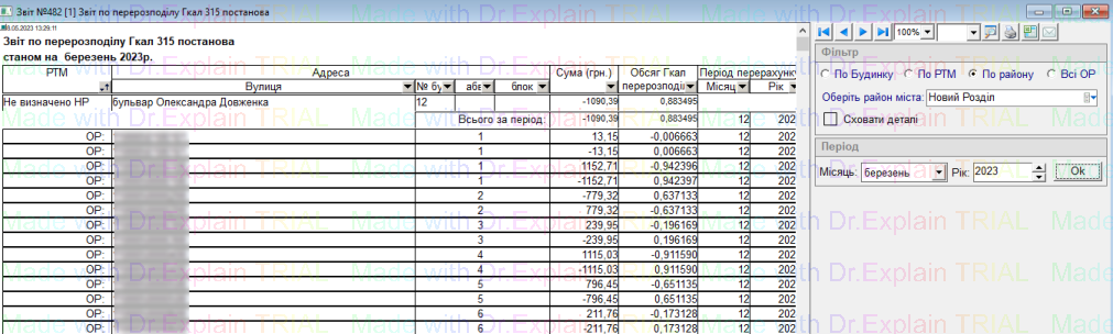 519 Звіт про нарахування за послугу з постачання теплової енергії по періодам