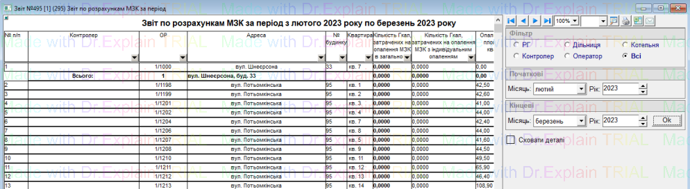 519 Звіт про нарахування за послугу з постачання теплової енергії по періодам