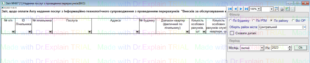 519 Звіт про нарахування за послугу з постачання теплової енергії по періодам