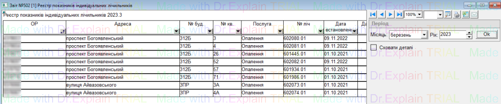 341 Звіт по особових рахунках щодо яких відбулися зміни опалювальної площі в певний період
