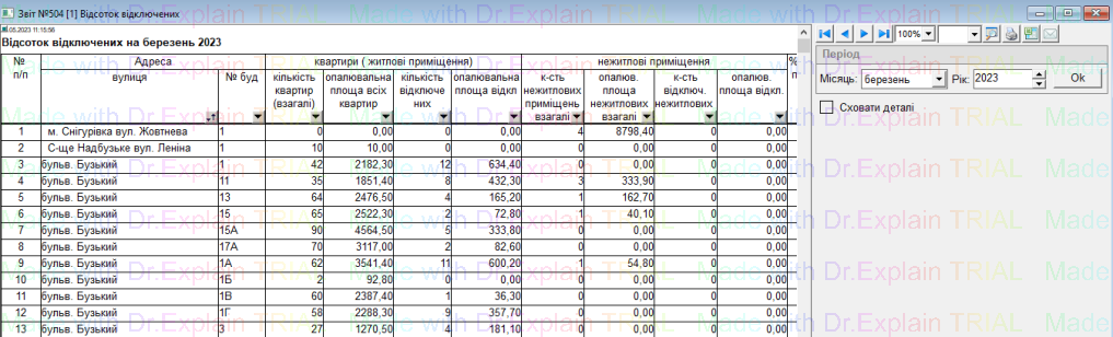 519 Звіт про нарахування за послугу з постачання теплової енергії по періодам