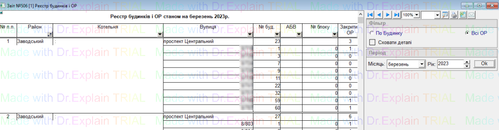 321 Звіт про наявність санітарних приладів по вбудованим приміщенням