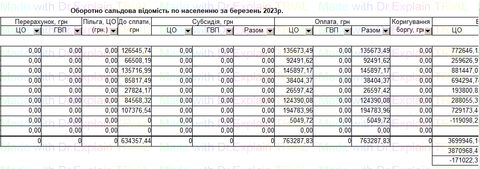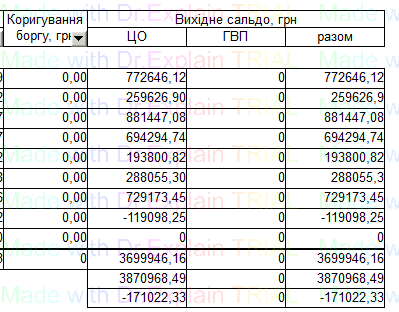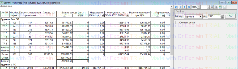 519 Звіт про нарахування за послугу з постачання теплової енергії по періодам