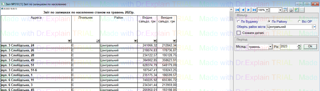 341 Звіт по особових рахунках щодо яких відбулися зміни опалювальної площі в певний період