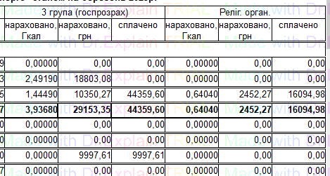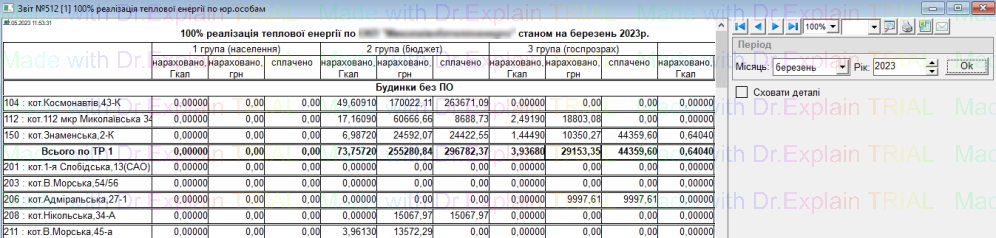 519 Звіт про нарахування за послугу з постачання теплової енергії по періодам