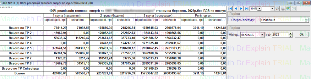 519 Звіт про нарахування за послугу з постачання теплової енергії по періодам