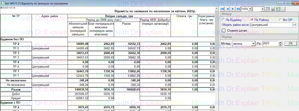 519 Звіт по залишках по населенню в розрізі послуг та періодів на початок