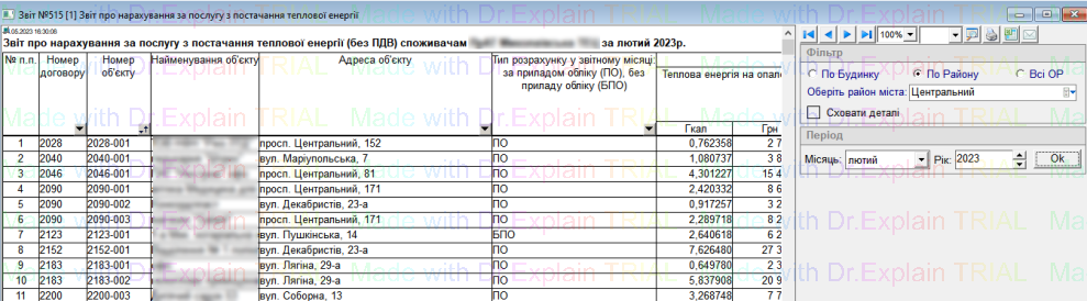 515 Звіт про нарахування за послугу з постачання теплової енергії