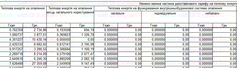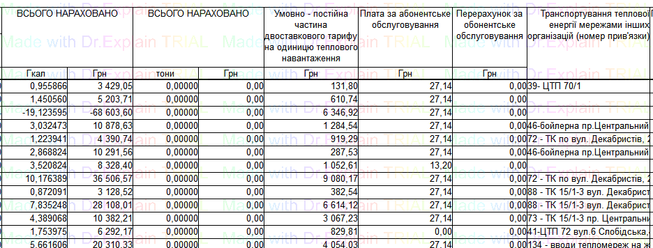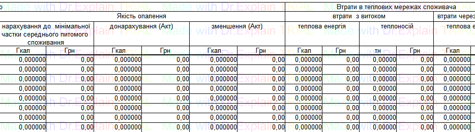 519 Звіт про нарахування за послугу з постачання теплової енергії по періодам