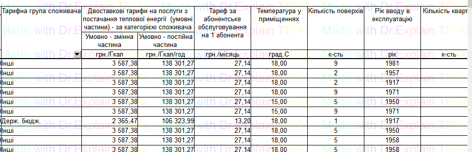520 Звіт про нарахування за послугу з постачання теплової енергії за тарифними групами споживачам