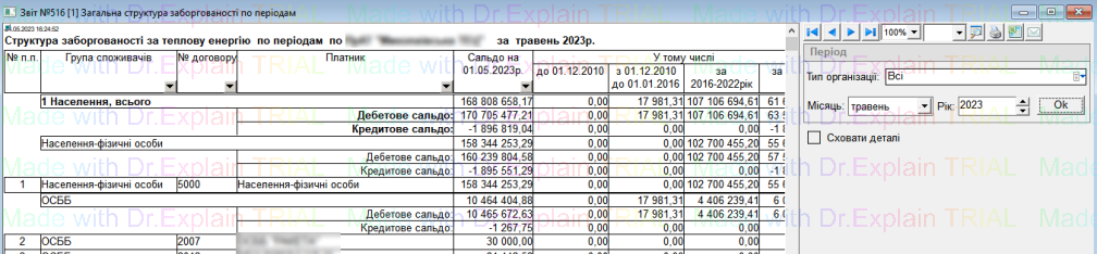 516 Загальна структура заборгованості по періодам