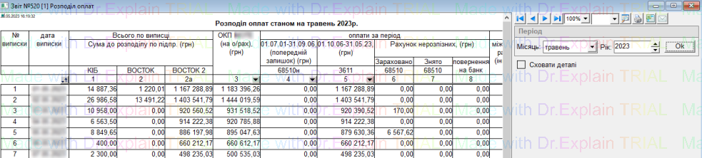 519 Звіт про нарахування за послугу з постачання теплової енергії по періодам