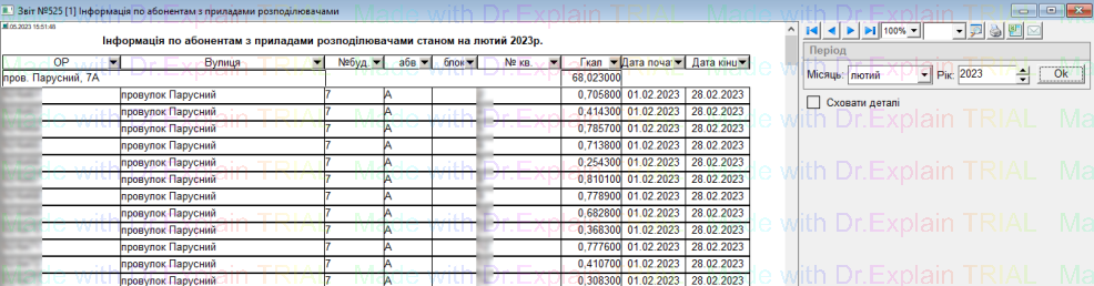 525 Інформація по абонентам з приладами розподілювачами