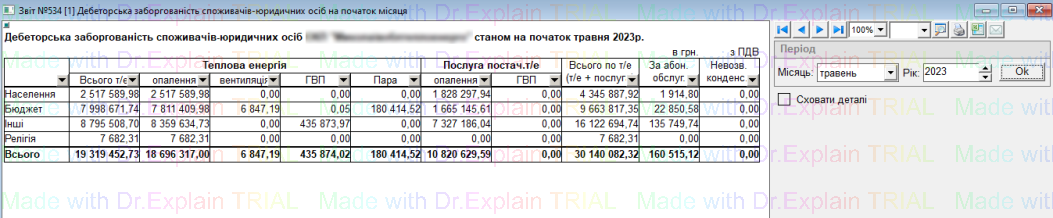 533 Дебеторська заборгованість споживачів-юридичних осіб на кінець місяця