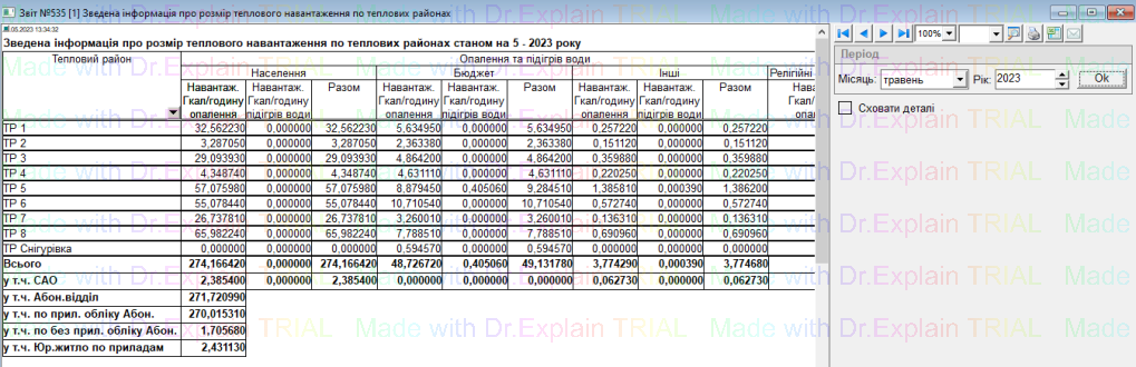 542 Звіт по Гкал та навантаженню по ІТП, ЦТП, САО