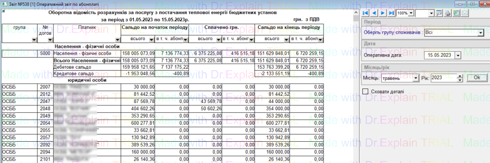 538 Оперативний звіт по абонплаті