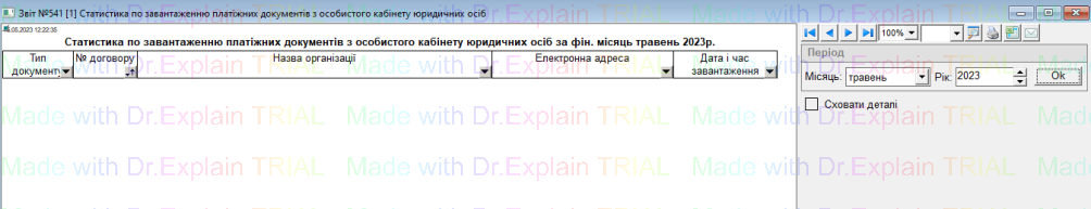 541 Статистика по завантаженню платіжних документів з особистого кабінету юридичних осіб