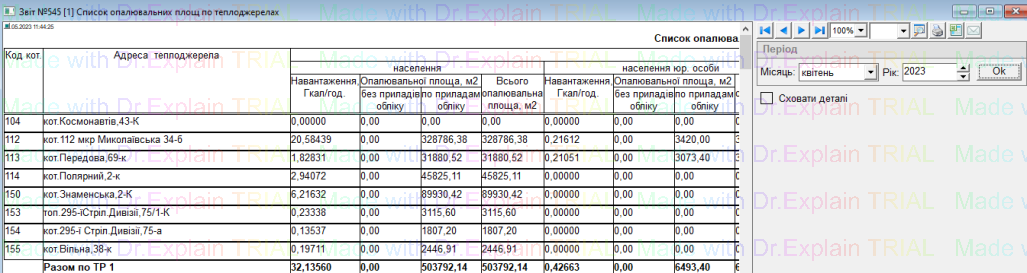 519 Звіт про нарахування за послугу з постачання теплової енергії по періодам