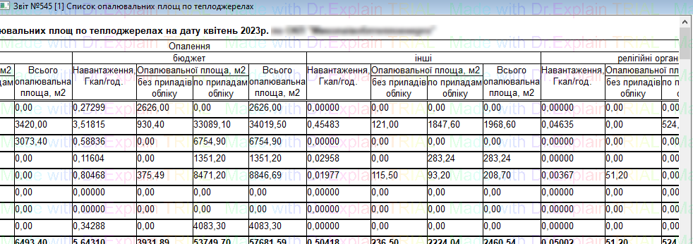 403 Звіт щодо опалювальної площі приміщень в будинку