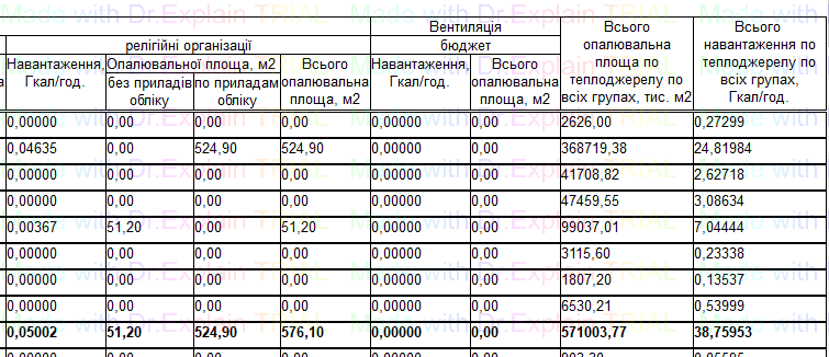 540 Інформація про розмір теплового навантаження на опалення та вентиляцію та опалювальних площ по теплових районах